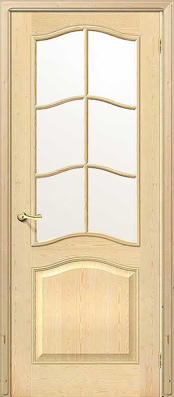 Неокрашенная сосновая дверь бессучковая "Классик" остекленная