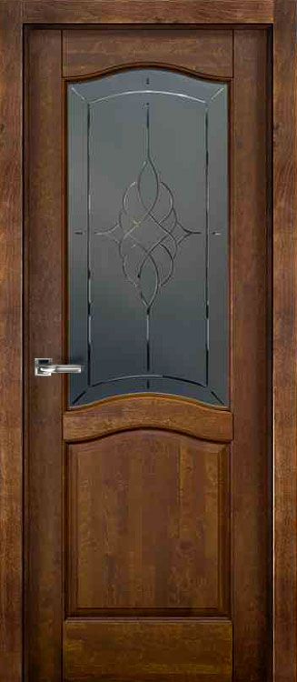Дверное классическое полотно со стеклом Лео из натуральной древесины ольхи обладает хорошей реакцией на морение. Тем самым, с помощью тонировки можно получить различные оттенки коньячного цвета с имитацией под античный орех, махагон, венге.