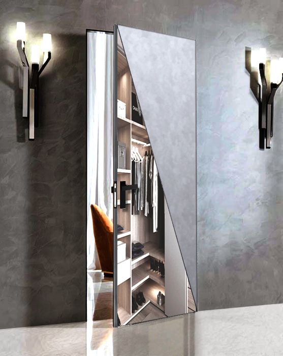 Дверь скрытая с внутренним зеркалом и черной кромкой