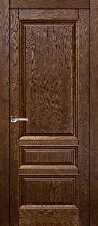 Классическая дубовая дверь Аристократ в тонированном покрытии античный орех с защитным полиуретановым лаком, с возможностью установки дополнительного декора (Карниз, 2 розетки и 2 цоколя). За счет применения в конструкции обвязки из массива ольхи, цена на межкомнатную дверь будет меньше чем за полноценный дубовый массив.