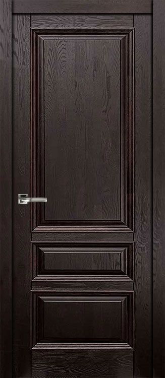Классическая дубовая дверь Аристократ в тонированном покрытии венге с защитным полиуретановым лаком, возможно установить дополнительный декор (Карниз, 2 розетки, 2 цоколя). За счет применения в конструкции обвязки из массива ольхи, цена на межкомнатную дверь будет меньше чем за полноценный дубовый массив.