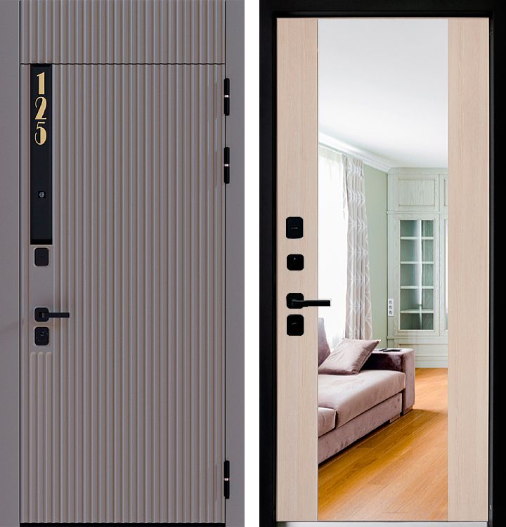 Металлическая дверь с большим зеркалом
