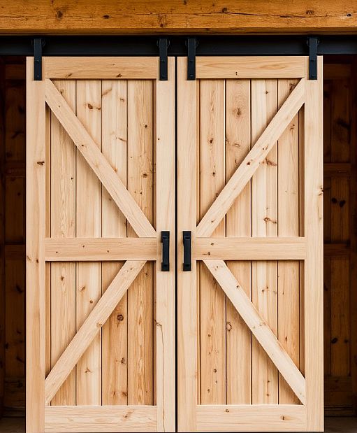 Двустворчатая раздвижная система в ретро стиле ДГ АМБ Лофт 1 для жилых и хозяйственных помещений. Деревянная амбарная дверь из массива сосны под тонировку. Установка двери АМБ на подвесной системе или в распашном варианте без подвесного механизма Лофт.