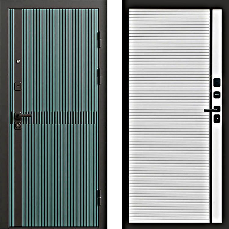 Входная дверь Граунд velutto verde с внешней панелью зеленый бархат и вставками для установки в квартиру. Трехконтурная дверь с выбором внутренней панели по рисунку и цвету.