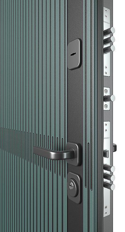 Входная утепленная дверь Граунд velutto verde (зеленый бархат) с внешней комбинированной панелью для установки в квартиру. Трехконтурная дверь с выбором внутренней панели по рисунку и цвету.