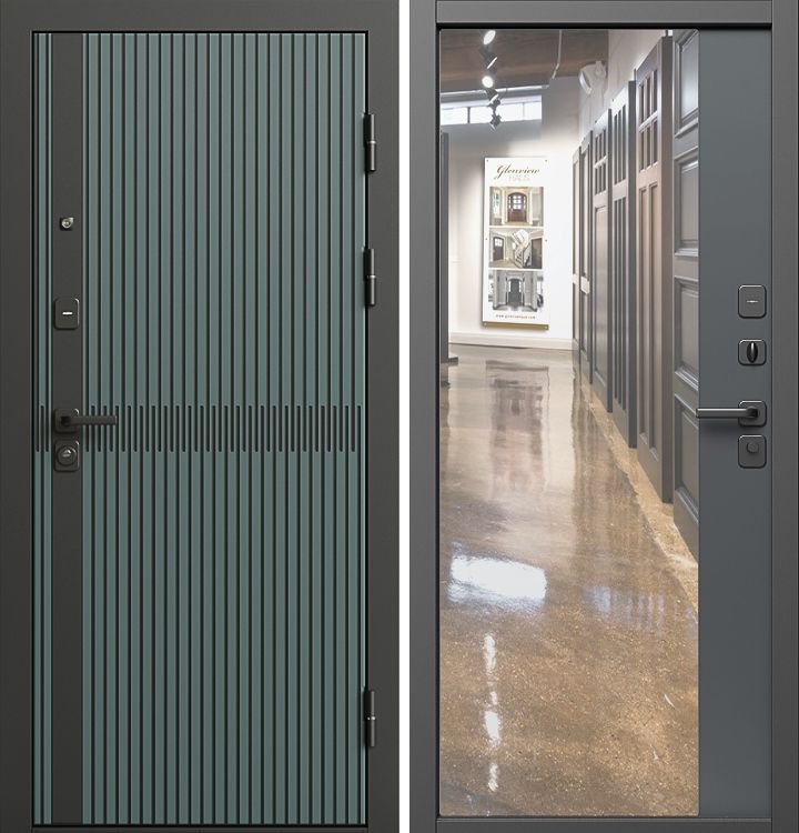 Дверь в квартиру Граунд velutto verde с панелью Зеркало