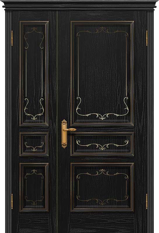 Конструкция - массив сосны с последующей отделкой натуральным шпоном. Дверное полотно комплектуется коробкой, наличниками, доборами, капителью и карнизами - по желанию заказчика.