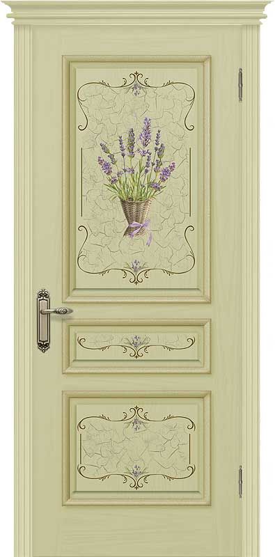 Распашная межкомнатная дверь Оливия ваниль с одной или двумя створками для внутренней установки в квартиру, дом, офисные помещения. Декоративная отделка дверного полотна (цвет ваниль с фотопечатью) идеально подойдет для оформления интерьера в стиле Прованс.