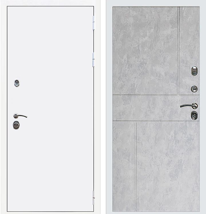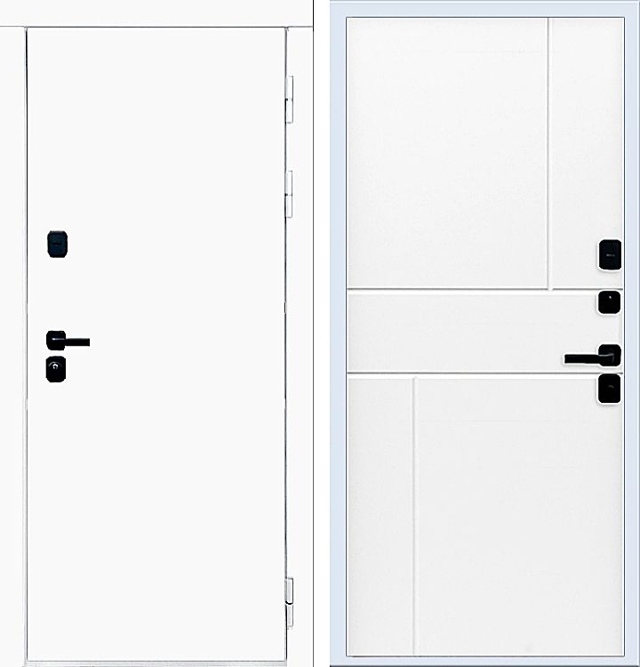 Входная дверь Rx5 белого цвета для установки в дома ПИК. Белая дверь с внешней стороны с выбором внутренней панели под свой интерьер прихожей.