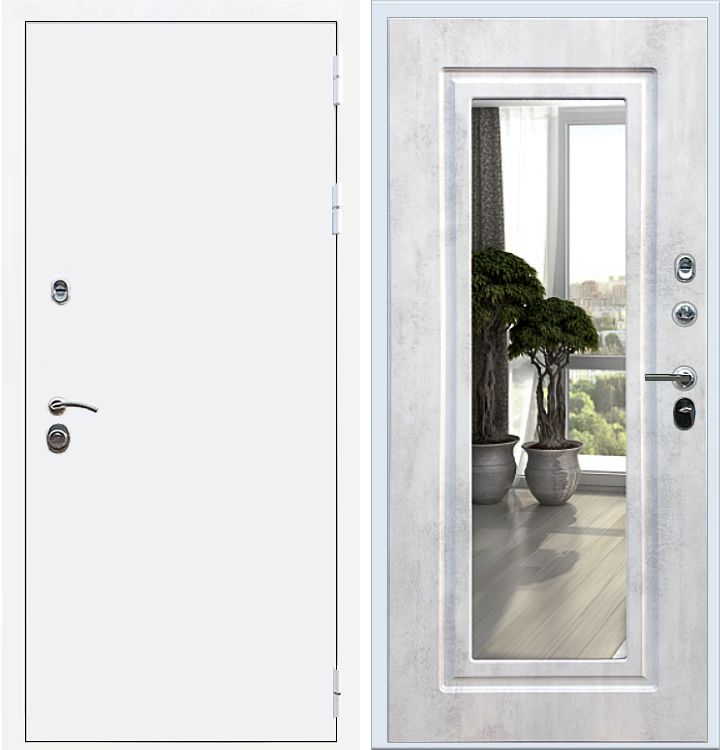 Белая дверь с зеркалом бетон светлый