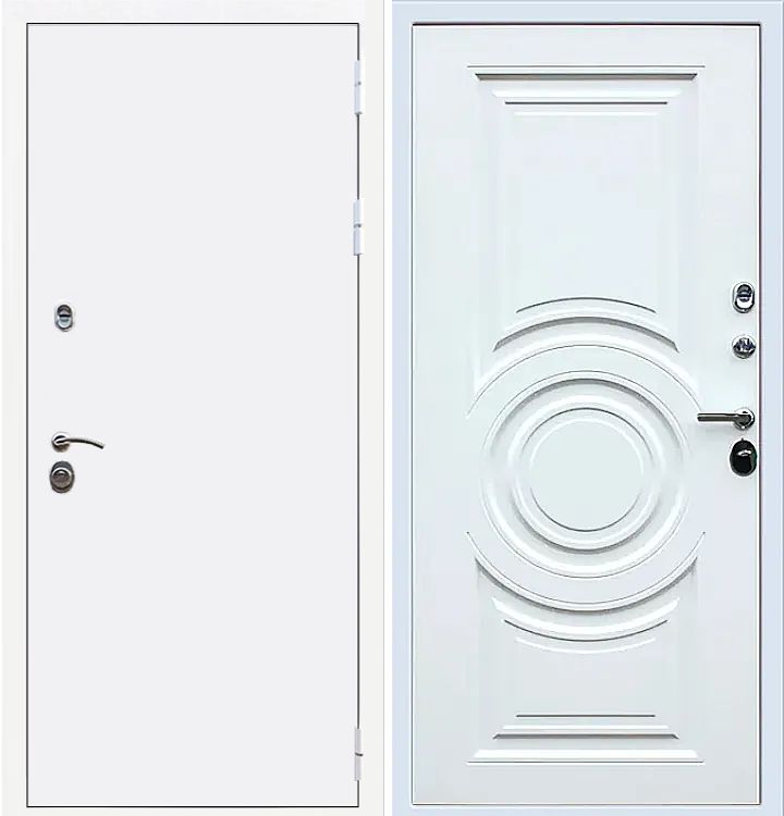 Входная дверь Rx5 белого цвета для установки в дома ПИК. Белая дверь с внешней стороны с выбором внутренней панели под свой интерьер прихожей.