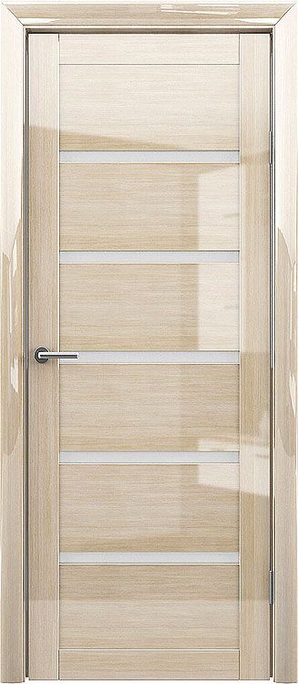 Недорогая межкомнатная дверь с горизонтальными стеклами. На фото: стекло матовое.
