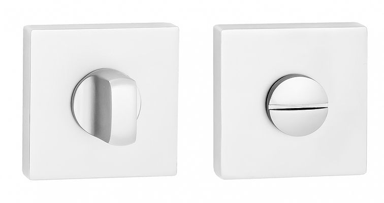 Завертка выполнена в стилистике дверных ручек, имеет тот же цвет, аналогичную форму розетки и снабжена удобным поворотным вертушком.